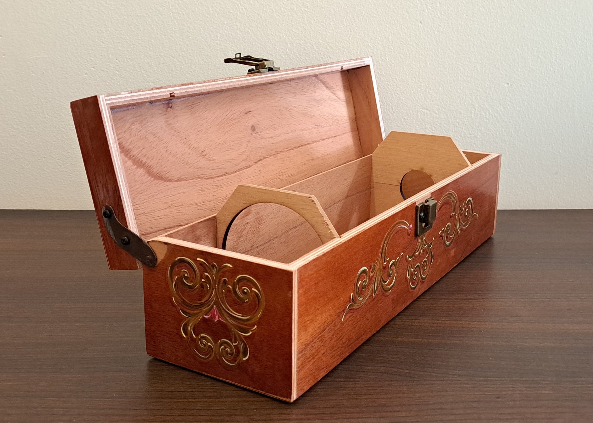 - Estuche de cedro intervenido a mano con una obra de arte exclusiva
