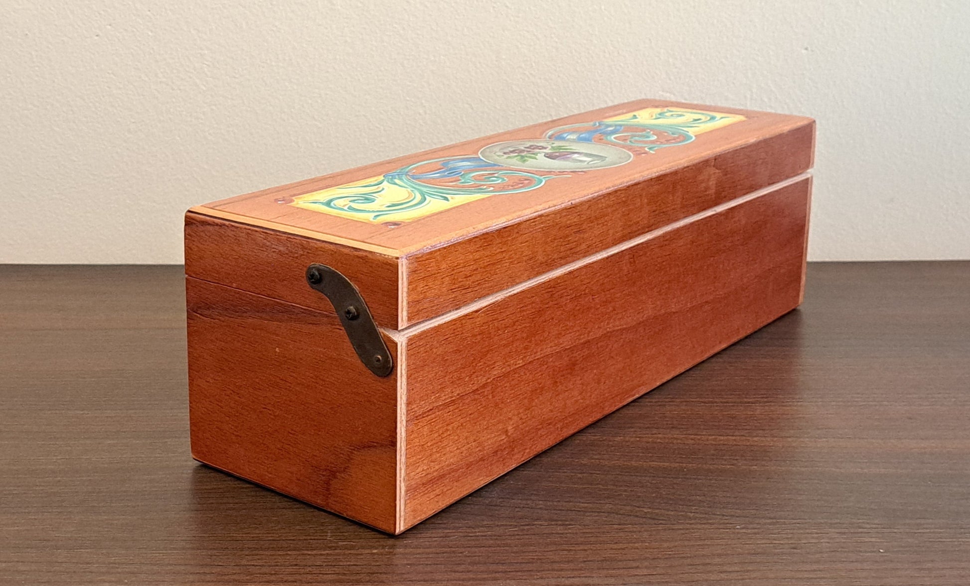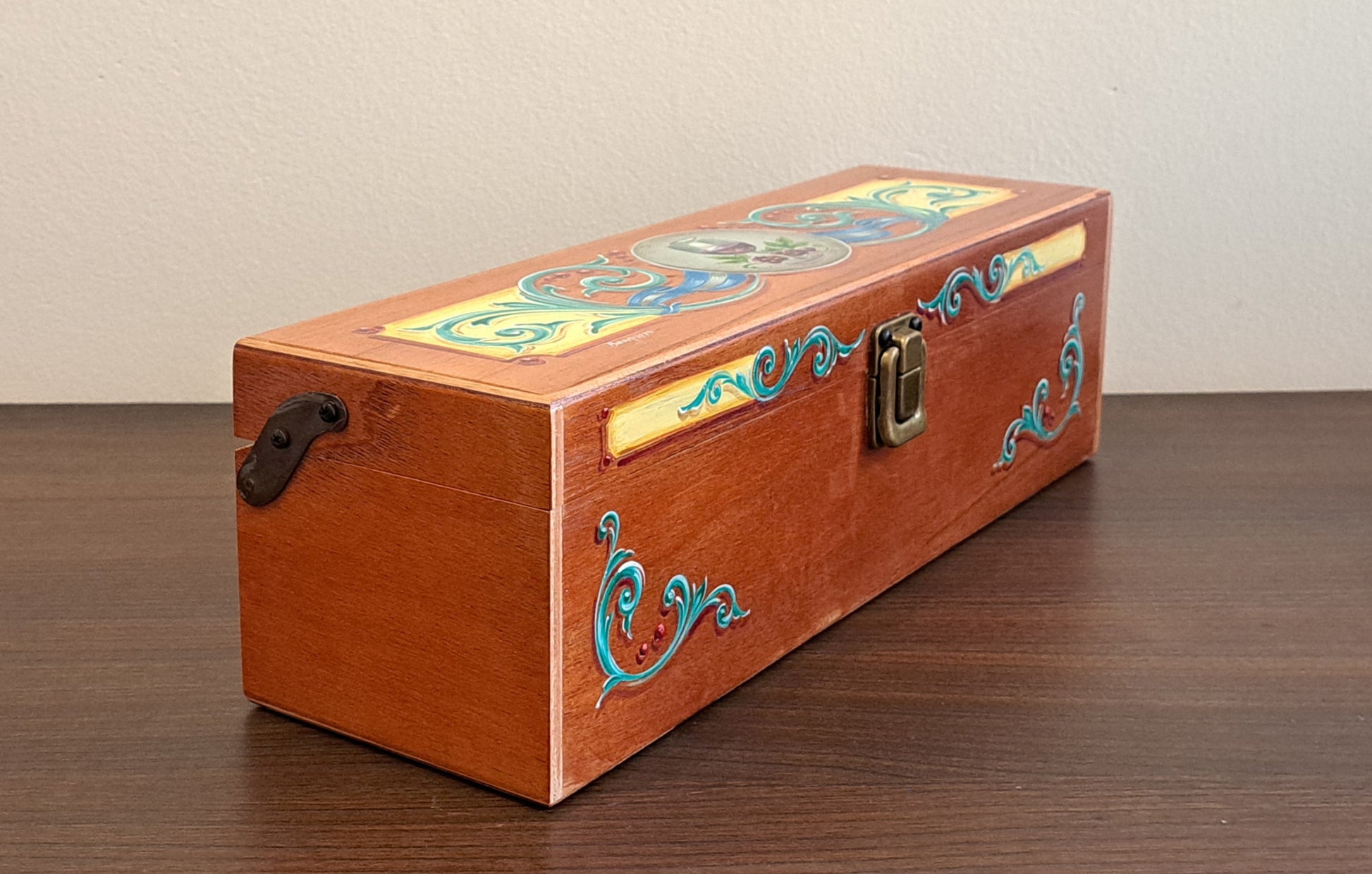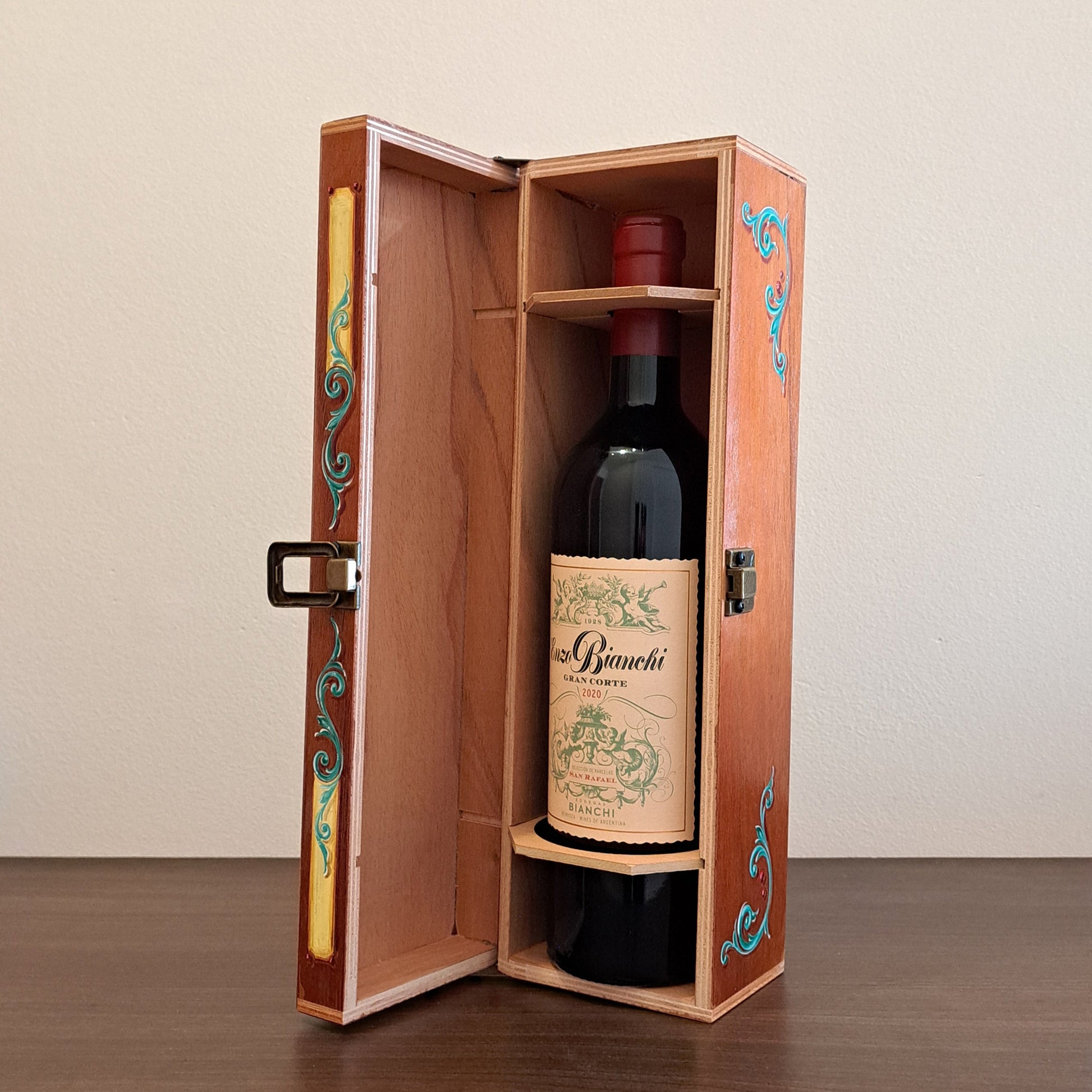 - Estuche de cedro intervenido a mano con una obra de arte exclusiva