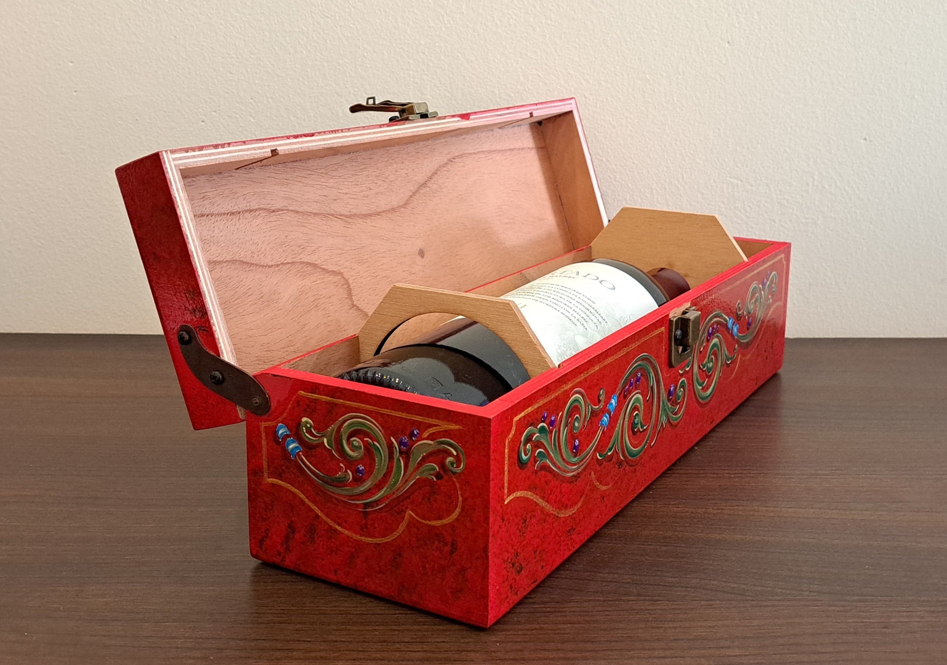 - Estuche de cedro intervenido a mano con una obra de arte exclusiva