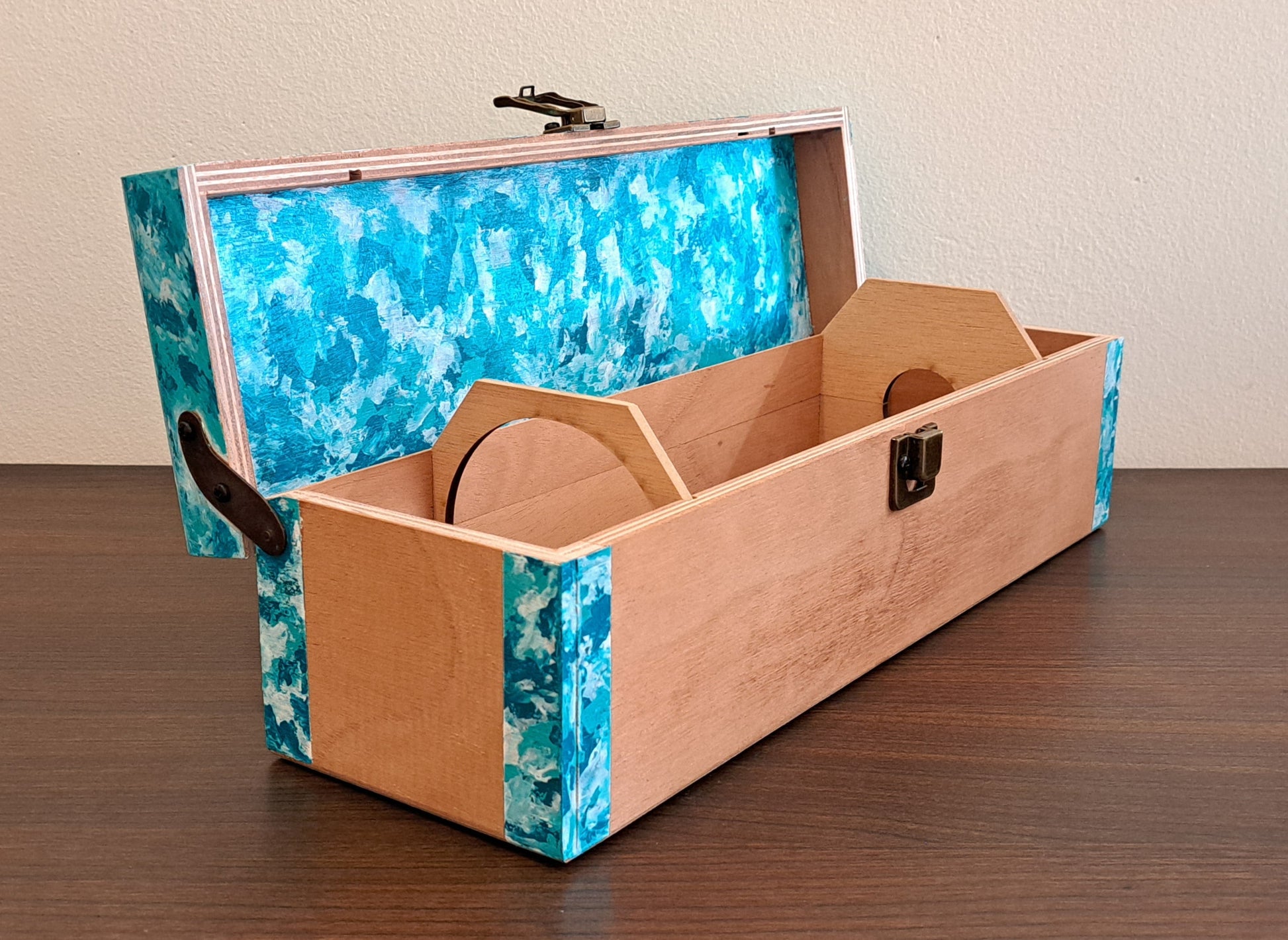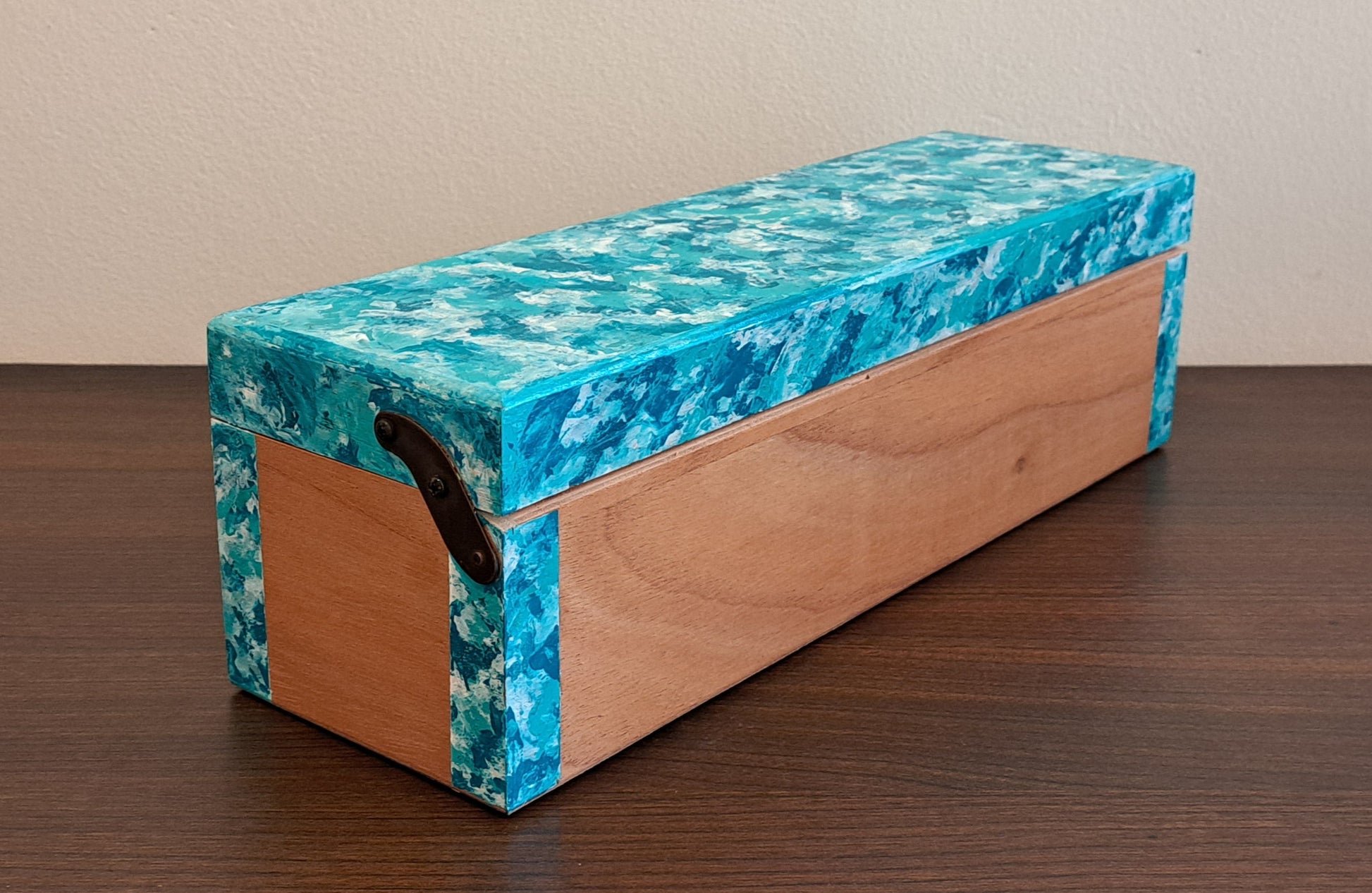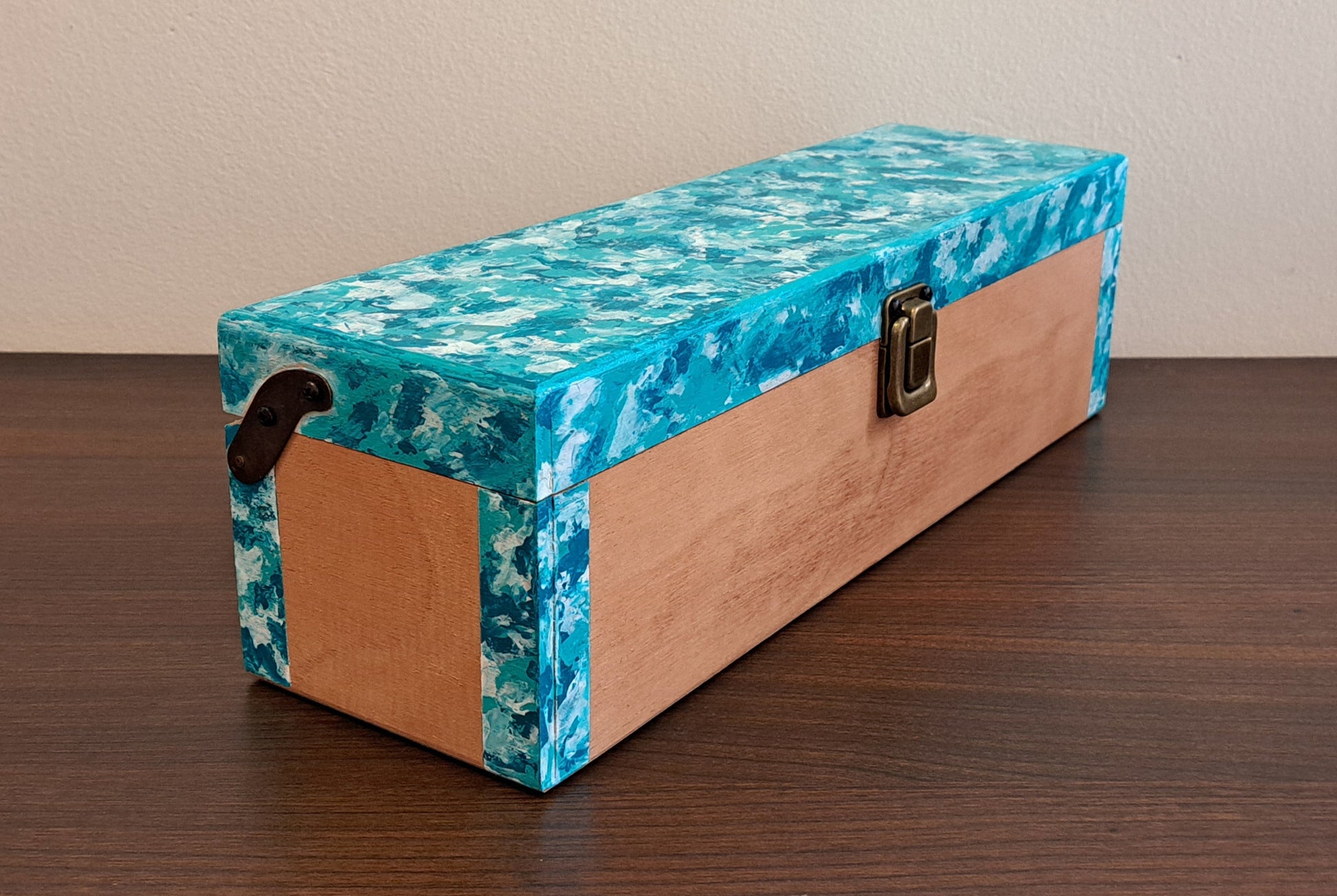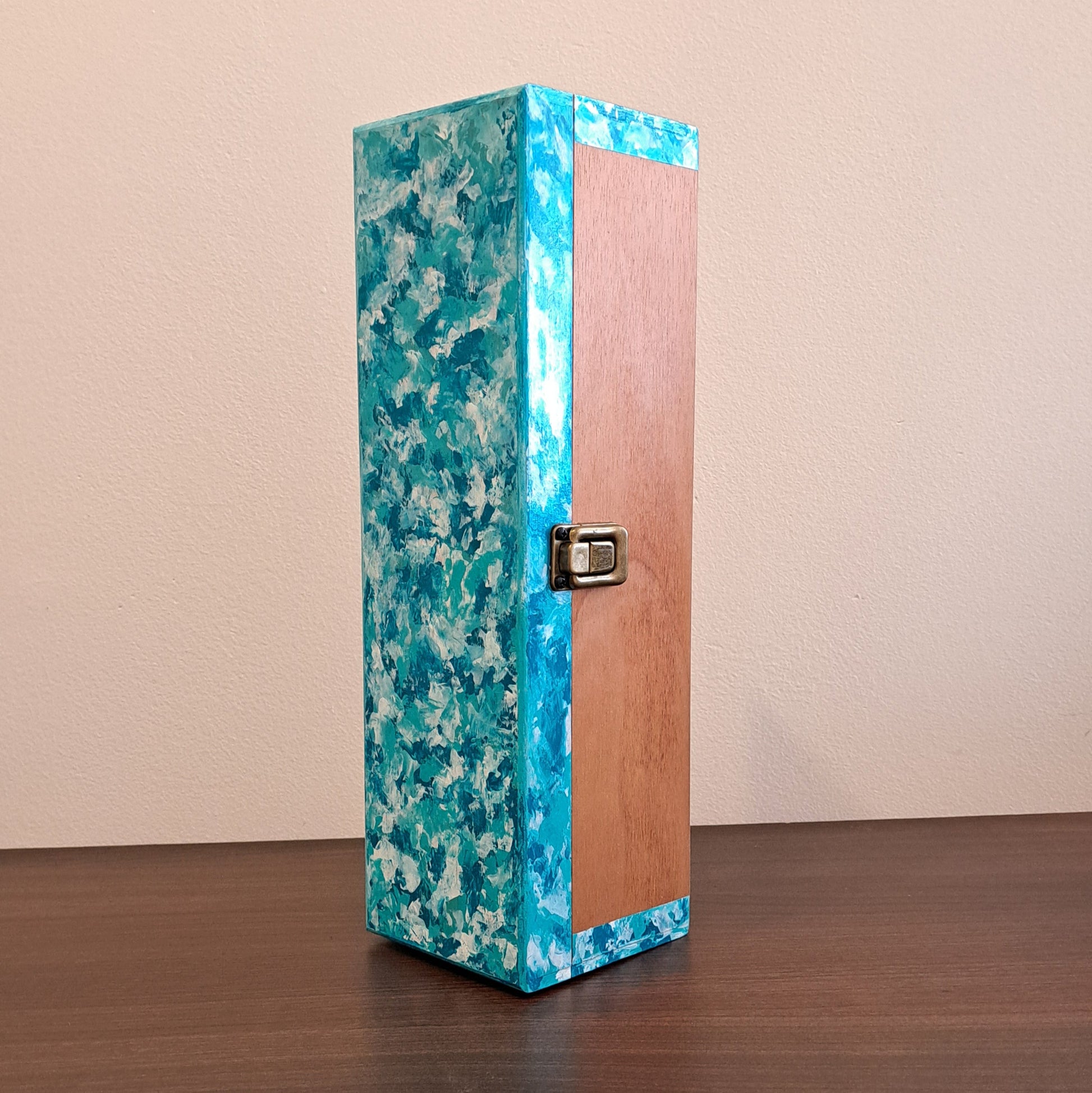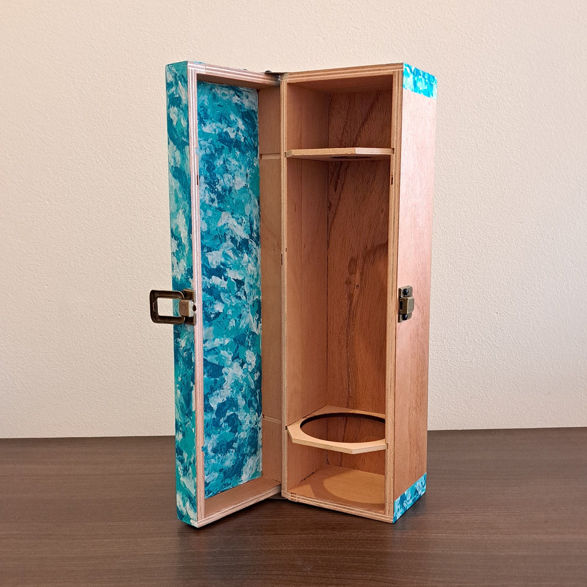 - Estuche de cedro intervenido a mano con una obra de arte exclusiva