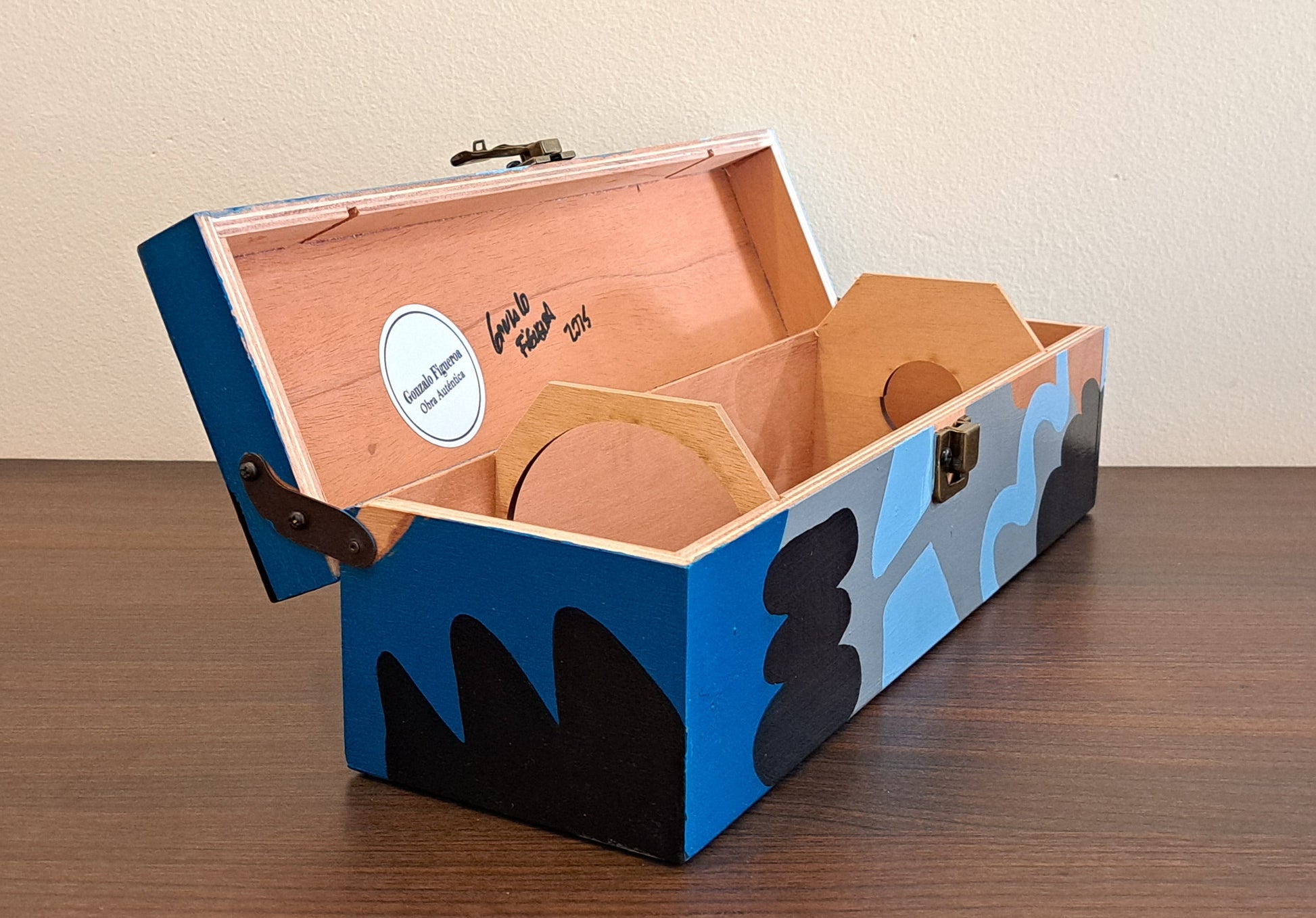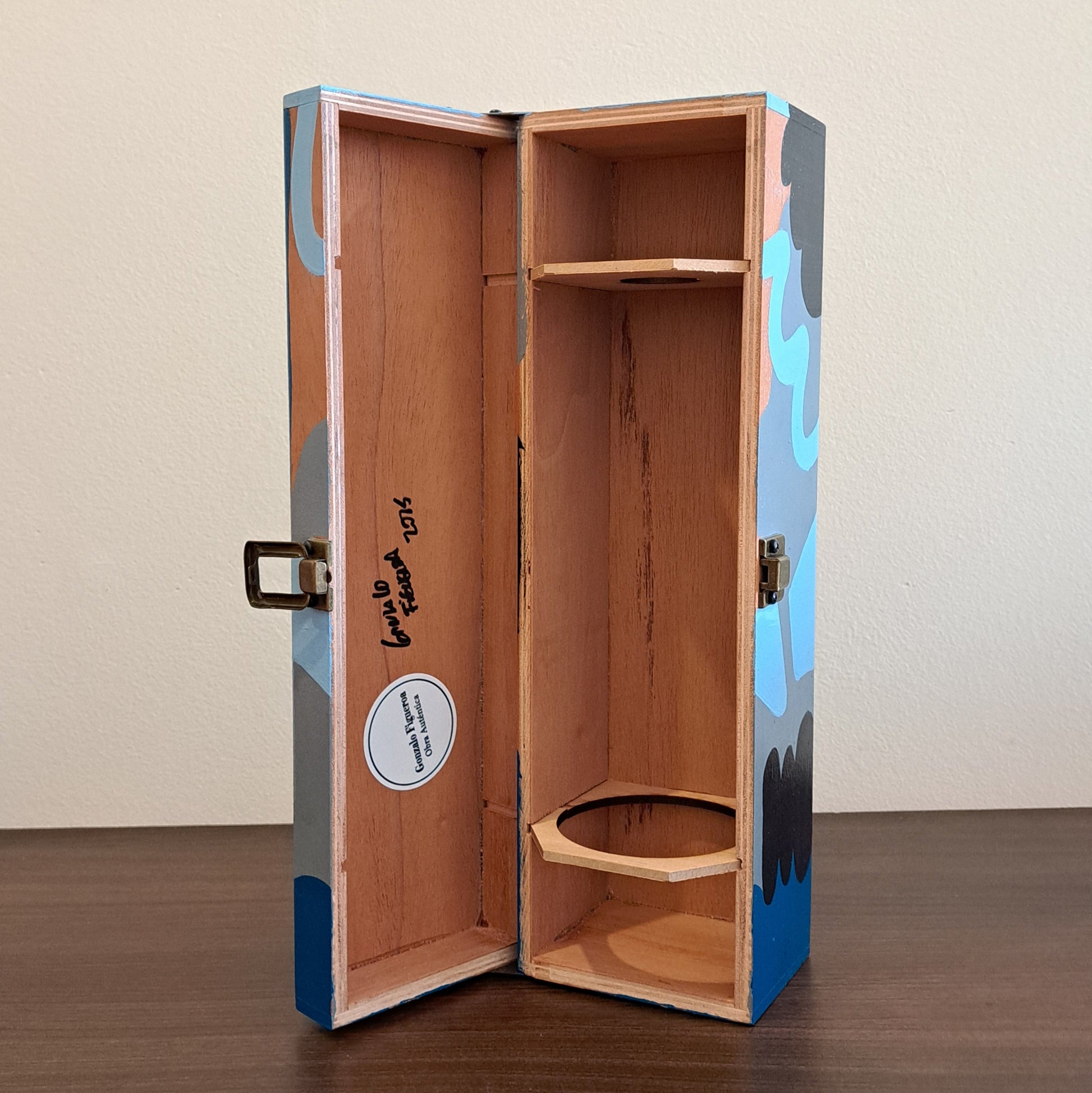- Estuche de cedro intervenido a mano con una obra de arte exclusiva