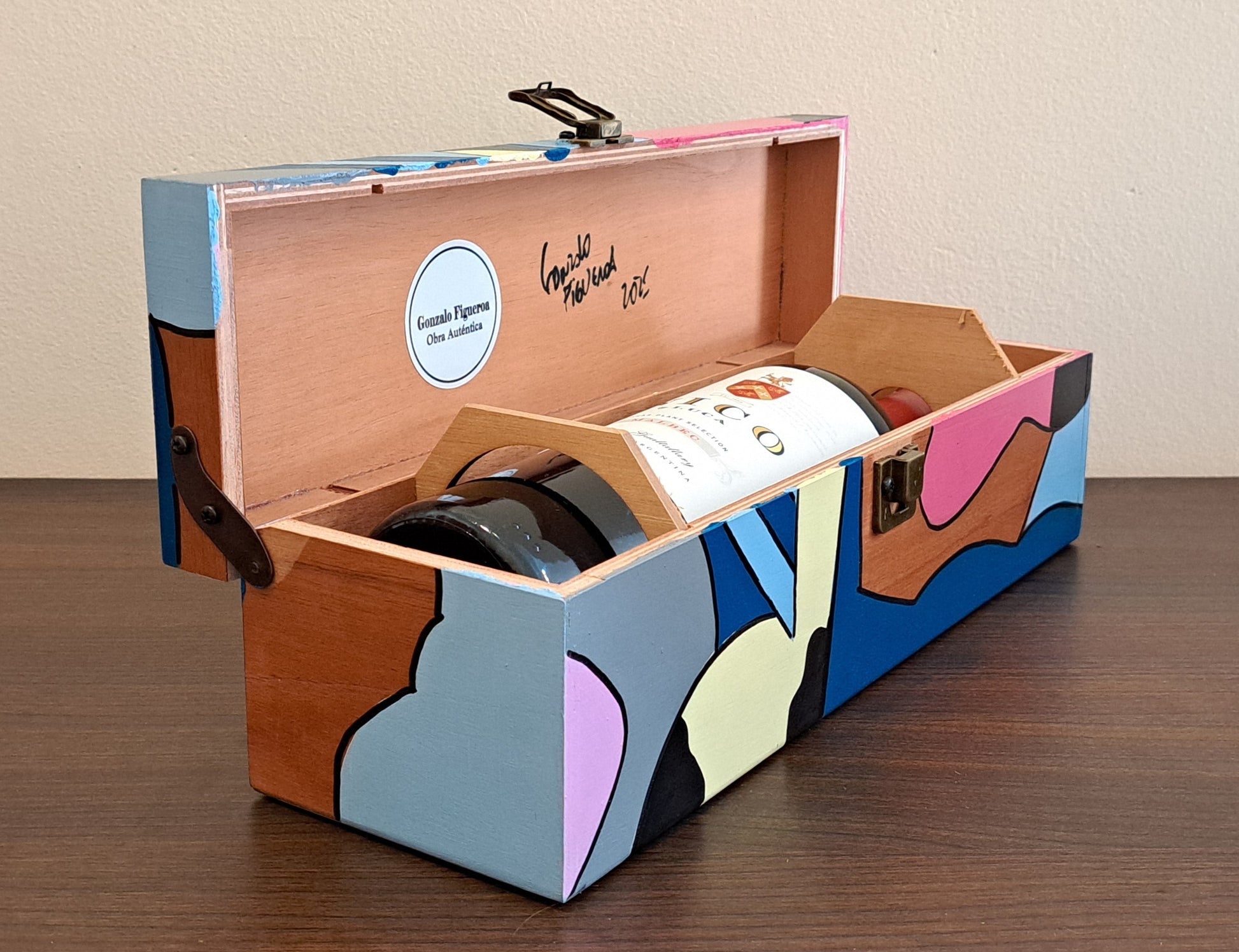 - Estuche de cedro intervenido a mano con una obra de arte exclusiva